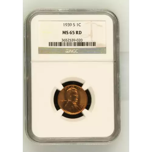 1939-S Small Cents Lincoln, Wheat Ears Reverse NGC MS-65 RD